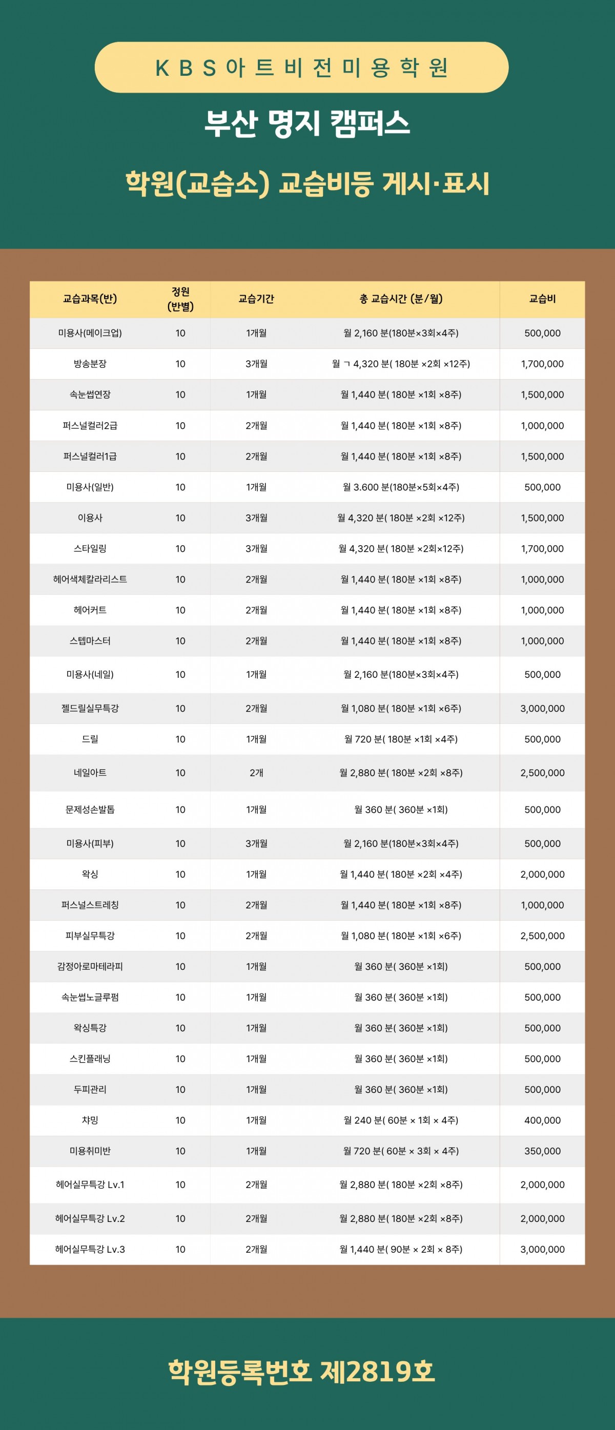 학원(교습소) 교습비등 게시ㆍ표시 페이지 정보 작성자 관리자[부산명지] 작성일24-09-30 14:57 조회1,648회 댓글0건 관련링크 이전글 다음글 목록 본문 ※ 학원(교습소) 교습비등 게시ㆍ표시의 자세한 내용은 본 첨부된 파일에 확인하실 수 있습니다. 이전글 다음글 목록