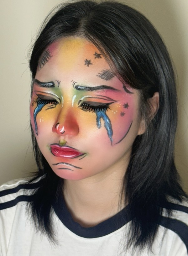 눈 밑에는 파란 눈물을 표현해 감정을 강조했고